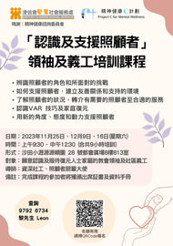 為教會領袖及義工提供與精神健康相關培訓,建立對精神健康有正確的認識和正面的態度和支援技巧,掌握社區資源及轉介途徑